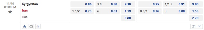 - Dự đoán tỷ số hiệp 1: Kyrgyzstan 0 – 1 Iran