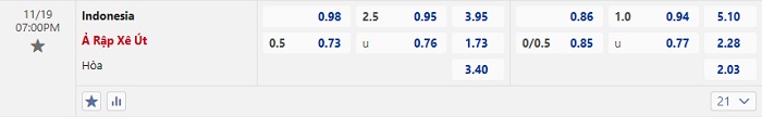Tip kèo tỷ số Indonesia vs Ả Rập Xê Út
