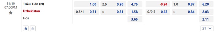 Tip kèo Châu Á hiệp 1 Triều Tiên vs Uzbekistan