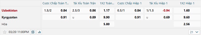 Tip kèo Châu Á hiệp 1 Uzbekistan vs Kyrgyzstan