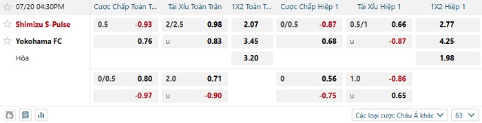 Tip kèo Châu Á hiệp 1 Shimizu S-Pulse vs Yokohama FC