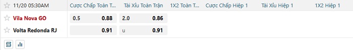 Tip kèo Châu Á full trận Vila Nova vs Volta Redonda