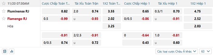 Tip kèo Châu Á full trận Fluminense vs Flamengo