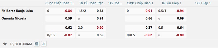 Tip kèo Châu Á hiệp 1 Borac Banja vs Omonia Nicosia