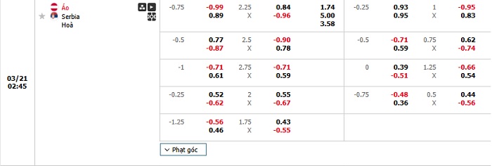 Tip kèo Châu Á hiệp 1 Áo vs Serbia