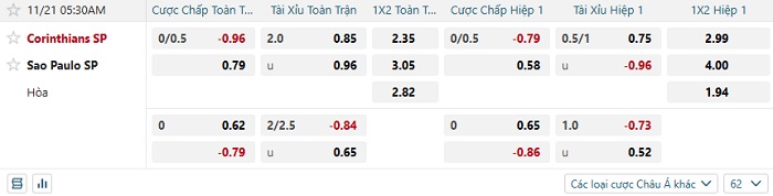 Tip kèo Châu Á hiệp 1 Corinthians vs Sao Paulo