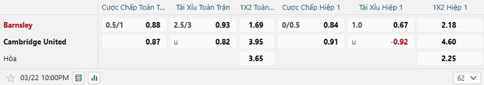 Tip kèo Châu Á hiệp 1 Barnsley vs Cambridge