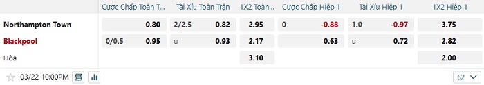 - Dự đoán tỷ số hiệp 1: Northampton 0 – 0 Blackpool