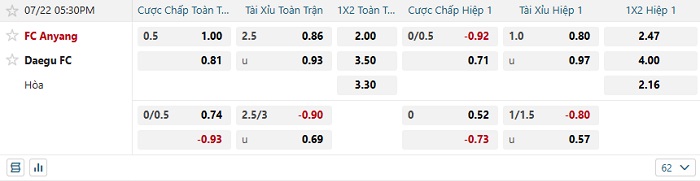 Tip kèo Châu Á hiệp 1 Anyang vs Daegu