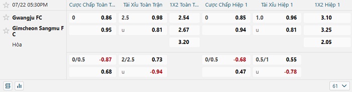 Tip kèo Châu Á hiệp 1 Gwangju FC vs Gimcheon Sangmu