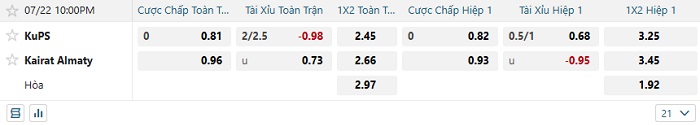 Tip kèo Châu Á full trận KuPS vs Kalrat Almaty