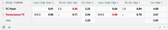 Nhận định trận đấu Noah FC vs Ferencvarosi: Dù bị đánh giá thấp hơn đối thủ về sức mạnh và phong độ nhưng lợi thế sân nhà vẫn sẽ giúp cho Noah có được 1 điểm trước Ferencvarosi ở vòng đấu này. Ở mức chấp +1/4, đội chủ nhà chính là lựa chọn vàng cho các nhà đầu tư. Và trận đấu hôm nay sẽ không có nhiều hơn 2 bàn thắng khi mà cả hai đều rất thận trọng.