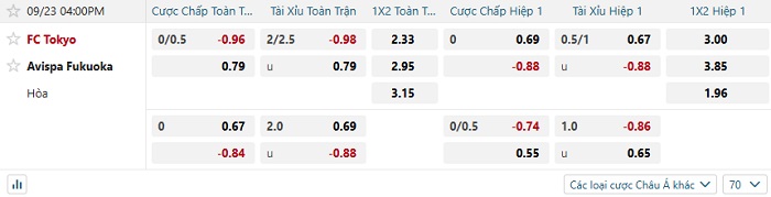 Tip kèo Châu Á hiệp 1 FC Tokyo vs Avispa Fukuoka