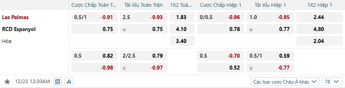 Tip kèo Châu Á hiệp 1 Las Palmas vs Espanyol