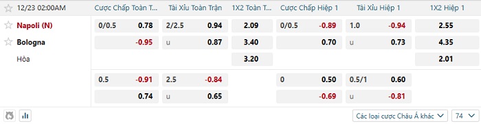 Tip kèo Châu Á full trận Napoli vs Bologna