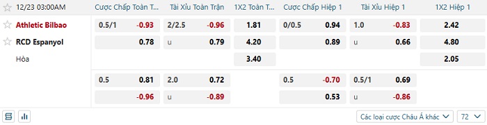 Tip kèo Châu Á full trận Bilbao vs Espanyol