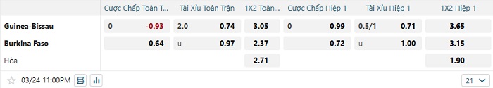 Tip kèo Châu Á hiệp 1 Guinea Bissau vs Burkina Faso