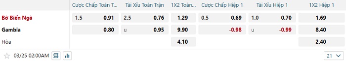 - Dự đoán tỷ số hiệp 1: Bờ Biển Ngà 1 – 0 Gambia