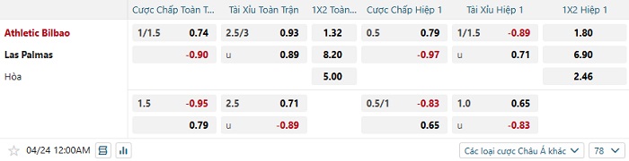 Tip kèo bóng đá trận Bilbao vs Las Palmas – 00h00 ngày 24/04/2025 VĐQG Tây Ban Nha