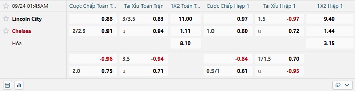 Tip kèo Châu Á hiệp 1 Lincoln vs Chelsea