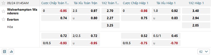 - Dự đoán tỷ số hiệp 1: Wolves 0 – 0 Everton