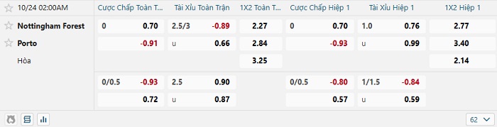 Tip kèo Châu Á hiệp 1 Nottingham vs Porto