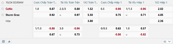 Tip kèo Châu Á hiệp 1 Celtic vs Sturm Graz