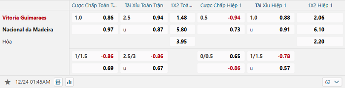 Tip kèo bóng đá trận Vitoria vs Nacional – 01h45 ngày 24/12/2024 VĐQG Bồ Đào Nha