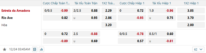 Tip kèo Châu Á hiệp 1 Estrela vs Rio Ave