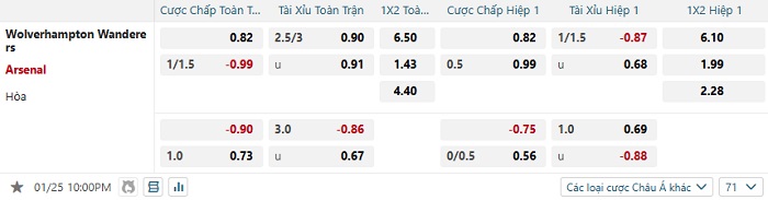 Tip kèo Châu Á hiệp 1 Wolves vs Arsenal