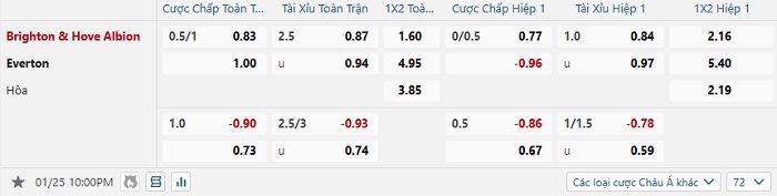 Tip kèo Châu Á full trận Brighton vs Everton