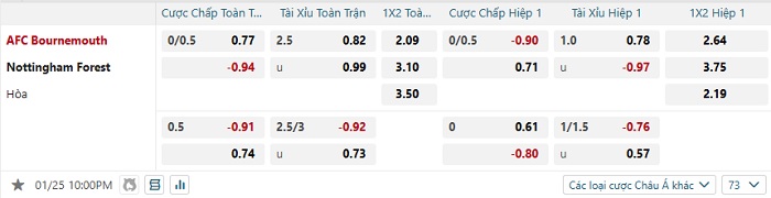 Tip kèo Châu Á hiệp 1 Bournemouth vs Nottingham