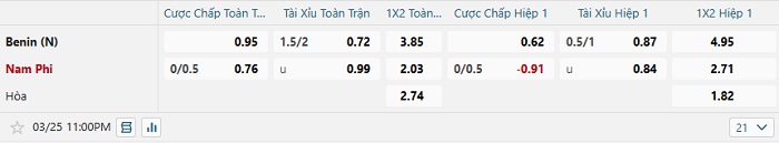 Tip kèo Châu Á hiệp 1 Benin vs Nam Phi