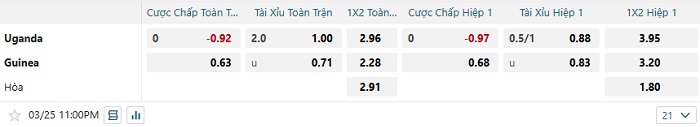 Tip kèo Châu Á full trận Uganda vs Guinea