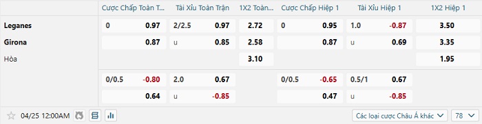 Tip kèo Châu Á full trận Leganes vs Girona