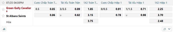 Tip kèo tỷ số Green Gully vs St Albans Saints