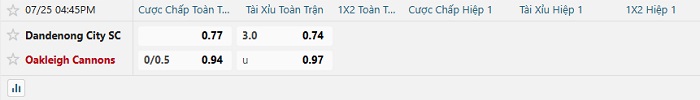 Tip kèo Châu Á full trận Dandenong City vs Oakleigh Cannons