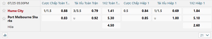 - Dự đoán tỷ số hiệp 1: Hume City 1 – 0 Port Melbourne Sharks