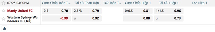 Tip kèo Châu Á full trận Manly United vs Western Sydney Youth
