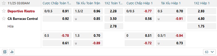 Tip kèo Châu Á hiệp 1 Deportivo Riestra vs Barracas Central