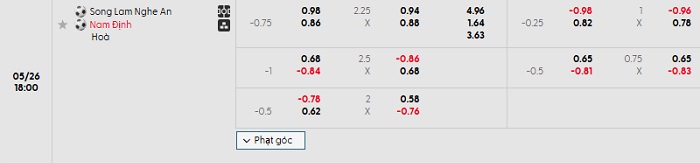 Tip kèo Châu Á hiệp 1 Sông Lam Nghệ An vs Nam Định