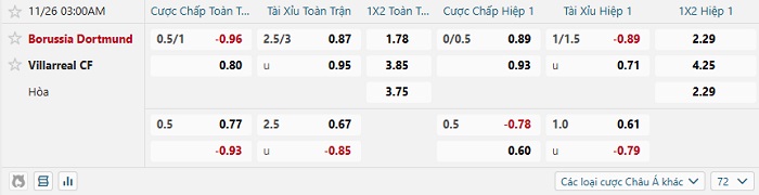 Tip kèo Châu Á full trận Dortmund vs Villarreal