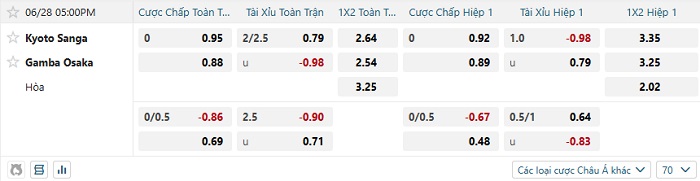 Tip kèo Châu Á hiệp 1 Kyoto Sanga vs Gamba Osaka