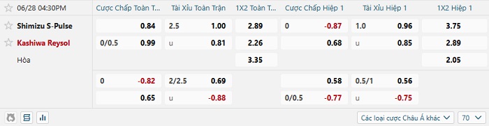- Tip kèo cá cược Châu Á hiệp 1: Chọn Shimizu S Pulse +1/4