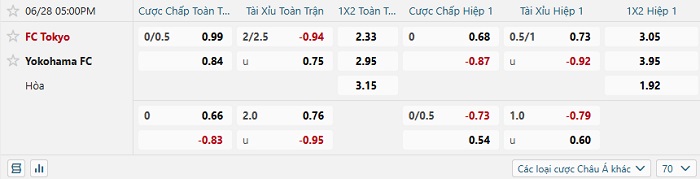 Tip kèo Châu Á hiệp 1 FC Tokyo vs Yokohama FC