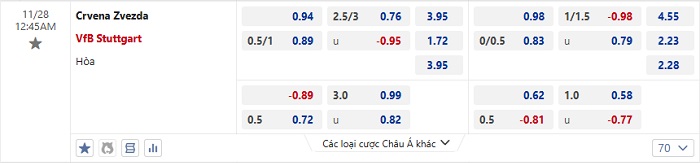 Tip kèo Châu Á hiệp 1 Crvena Zvezda vs Stuttgart