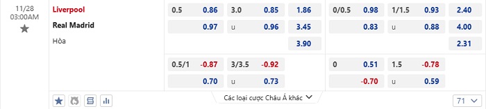 Tip kèo Châu Á hiệp 1 Liverpool vs Real Madrid