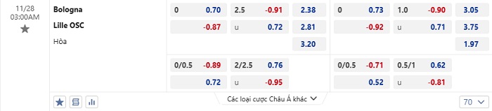 Tip kèo Châu Á hiệp 1 Bologna vs Lille