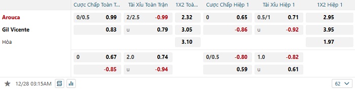 Tip kèo Châu Á hiệp 1 Arouca vs Vicente