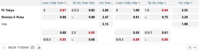 Tip kèo Châu Á hiệp 1 FC Tokyo vs Shimizu S-Pulse